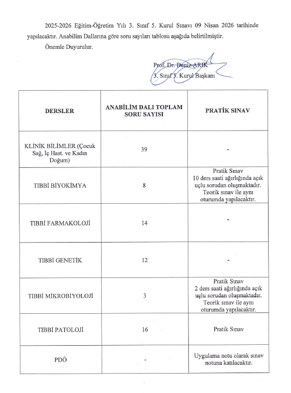 3.SINIF FİNAL SINAVI MUAF ÖĞRENCİ LİSTESİ